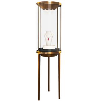 圆筒形拉丝红铜不绣钢立柜_高端珠宝展柜