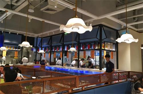 首先,如果不是像大排档那样把档位摆在店外,就需要考虑自己餐厅前厅的面积大小,能不能搭建起来放置食材的位置和厨师的操作空间。以往明厨多设在如上千平米的火锅烧烤自助餐、美食广场等这种面积足够大的餐饮业态。