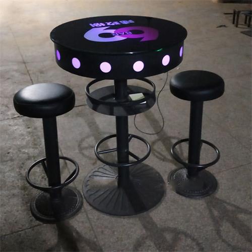 慢摇酒吧发光桌_酒吧散台钢化玻璃桌子圆型高脚吧台凳