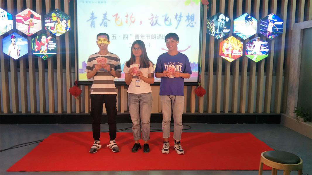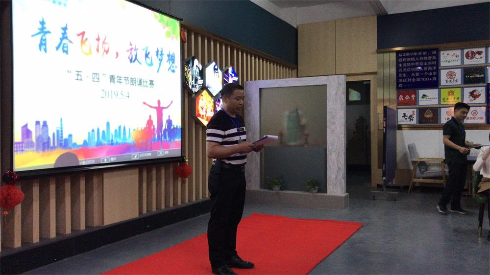 为了纪念“五四青年节”,牢记历史,继承祖辈的遗志,更为了加强我们公司的企业文化建设、激发员工对公司的热情、增强公司的凝聚力、加强员工的文学艺术修养、提高普通话水平及综合学习能力、丰富广大员工的生活、特举办了一场主题为“青春飞扬,放飞梦想”的朗读演讲比赛活动。