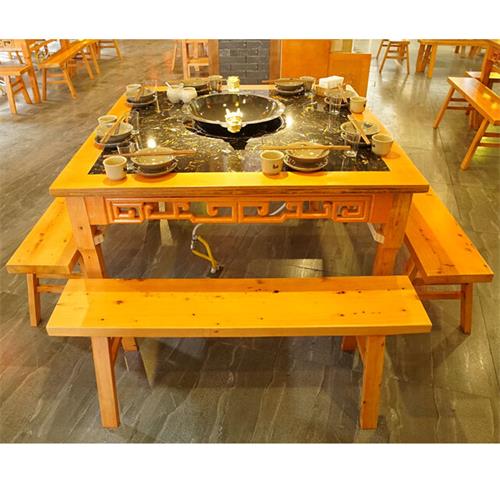 海德利火锅家具为您展示的是实木八仙桌大理石火锅桌燃气灶串串香火锅桌椅图片尺寸价格说明定做服务。