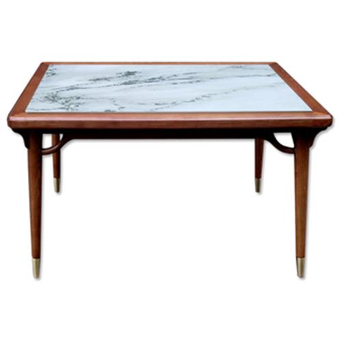 餐厅家具厂家为您展示西餐厅简约复古实木镶嵌大理石餐桌椅图片展示\价格说明\定做服务。